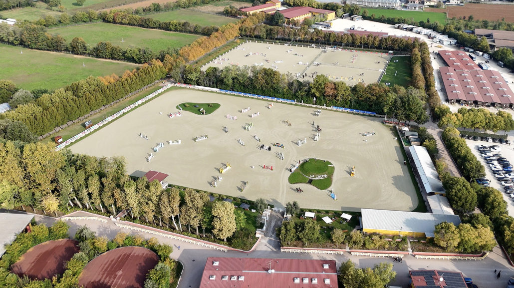 Un’arena principale che vanta il primato di essere la più grande d’Europa, 5 campi di allenamento, maneggio coperto, 300 box per i cavalli in gara.